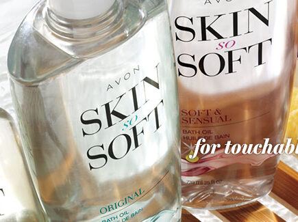 Originally called ‘Skin So Soft Emollient Bath Oil,’ the first Skin So Soft bath oil was formulated with emollient oils and scented with balsam, evergreen and herbs. Packaged in a glass perfume-like bottle, it was fitted with an ‘SSS’ as its logo.